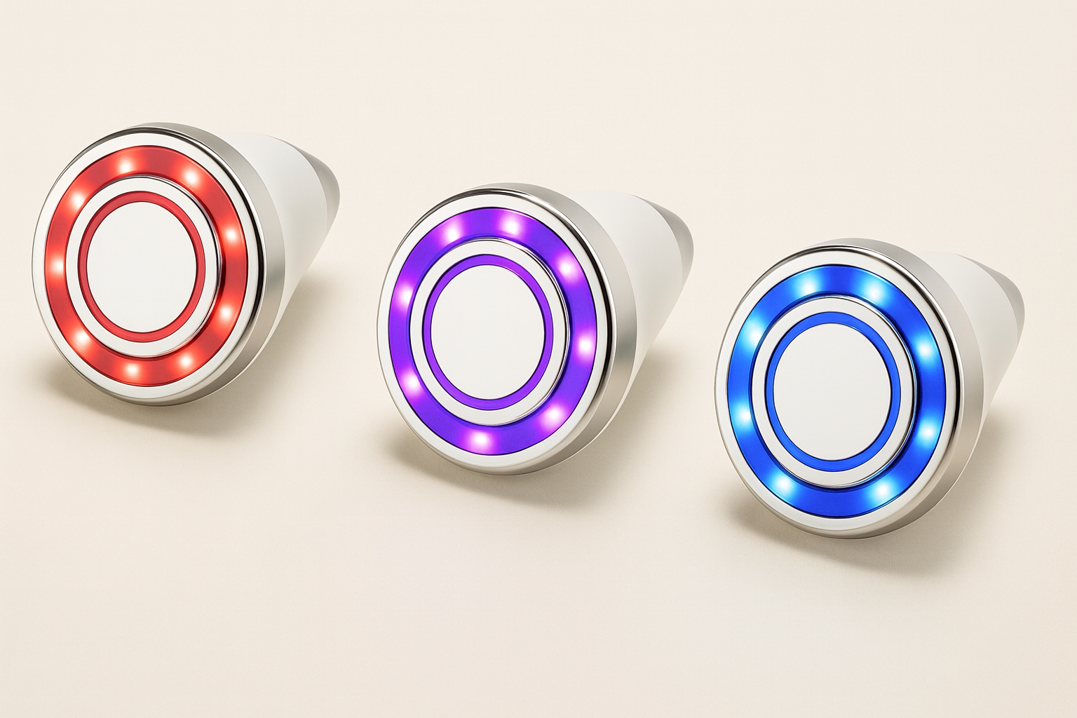 🔵 Bleu (LED) - Apaise, purifie et calme les irritations